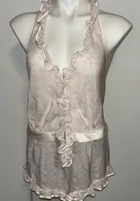 Victoria’s Secret 100% Silk Ruffle Zip Teddy Romper L NWT...