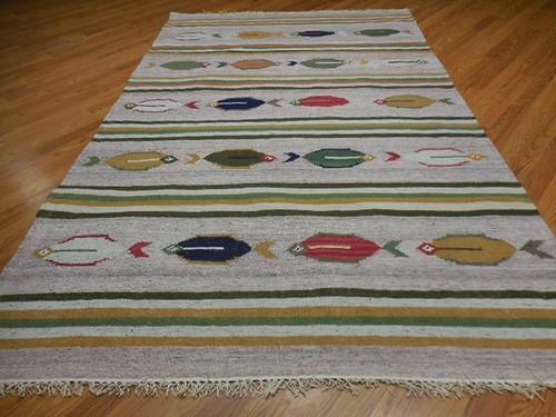 MODERND ANATOLIA FLATWAVE KILIM GEOMATRIC FISH DESIGND 5x8 RUG