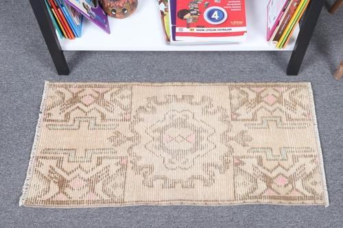 Vintage Small Rug 1,3x2,5 ft, Beige Oriental Turkish Wool Rug