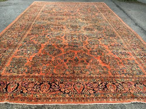 ANTIQUE HAND WOVEN RUG SAROUK MOHAJIRANN 12X18'5"
