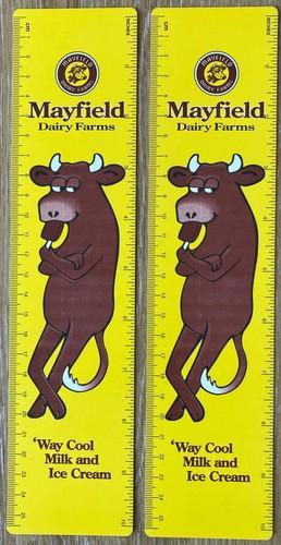 2 Vintage Mayfield Dairy Farms 10" Plastic Rulers 'Way Cool...