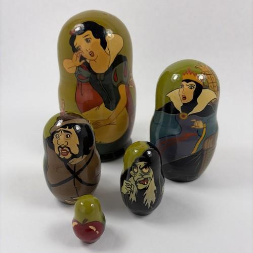 Russian Vintage Wood Nesting Dolls Hand Painted Snow White 5...