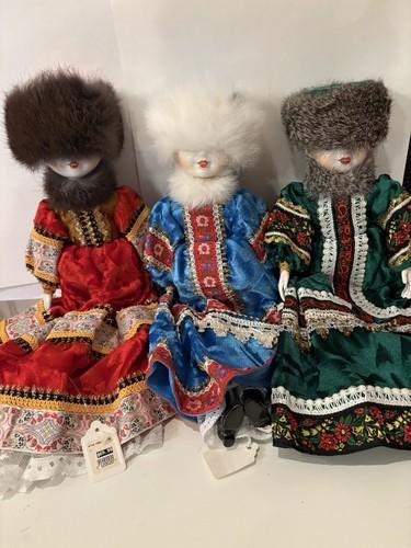 Set Of 3 Vintage Russian Porcelain Christmas Dolls 16 Inches...