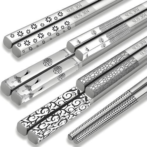 Stainless Steel Chopsticks 5 Pairs Metal Chopsticks Reusable...