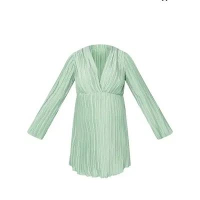 Pretty Little Thing Maternity Sage Green Plisse Plunge Mini...