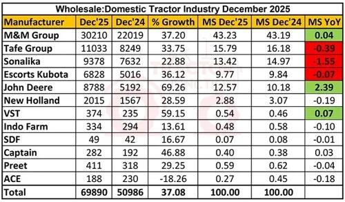 Domestic Tractor Sales Report December 2025: 37.08% Increase...