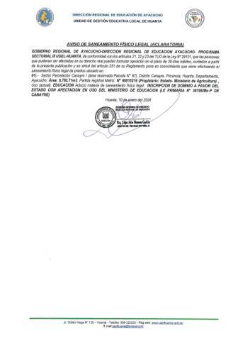 AVISO DE SANEAMIENTO FISICO LEGAL IEI 429-99 C.P. UNION MANTARO...