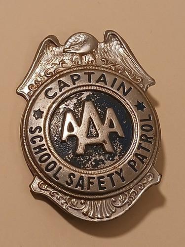AAA School Safety Patrol Captain Badge Vintage Metal Pinback...