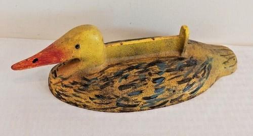 Vintage Antique Cast Iron DUCK Boot Scrape Doorstop Yellow...