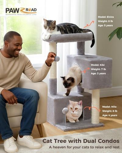 PAWZ Road Cat Tree Tower with Dual Condos Scratching Posts...