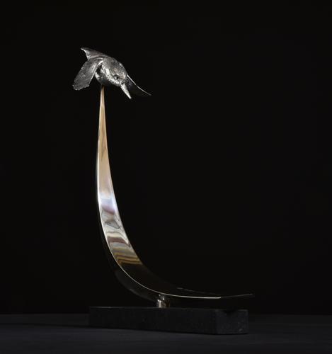 Silver kingfisher sculpture by Hamish Mackie