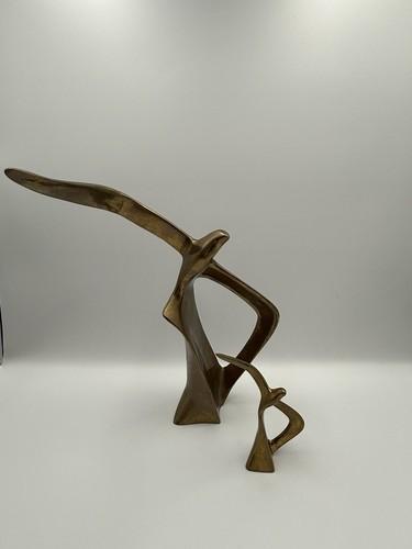 2 Vintage Brass Bird Sculpture, Modernist Mid Century Abstract...