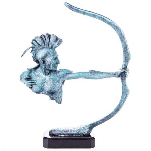 Modern Indian Bronze Western Sculpture with Green Patina Bow...