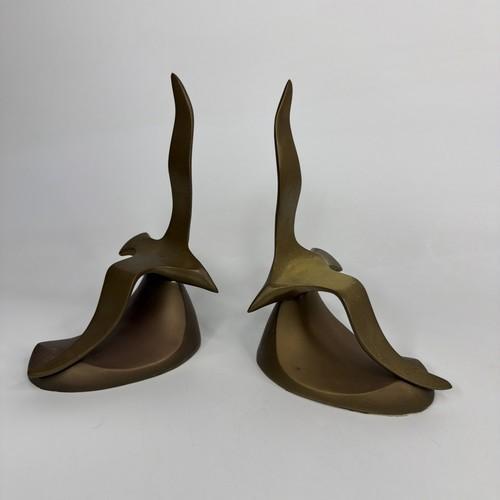 Vintage Brass Seagull Bookends Mid Century Modern Abstract Bird...