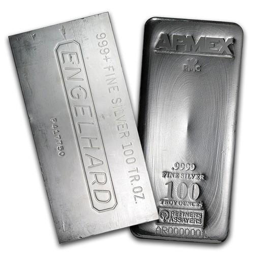 100 oz Silver Bar - Random Brand - Secondary Market - 999 Fine