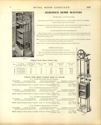 1903 PAPER AD Sedgwick dumb waiter elevator Diagram cross section