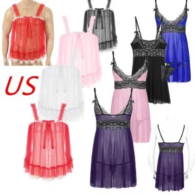 Sexy Men's Pajamas Mesh See Through Underwear Soft Smooth...