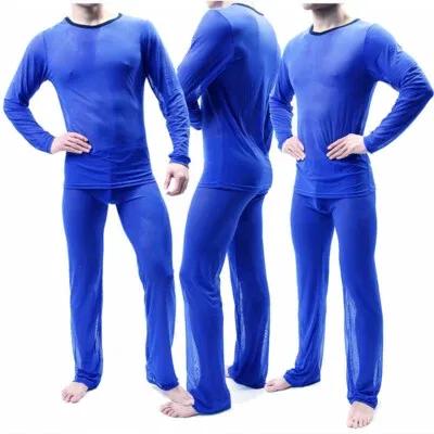 Mens Sexy Long John Set See-through Men's Underwear...