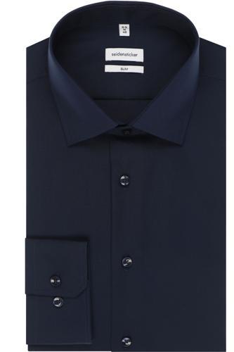 Seidensticker Shaped Overhemd donkerblauw, Effen | Overhemden.com