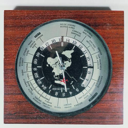 1970s Seiko Quartz World Time Zone Desk Clock with Airplane...