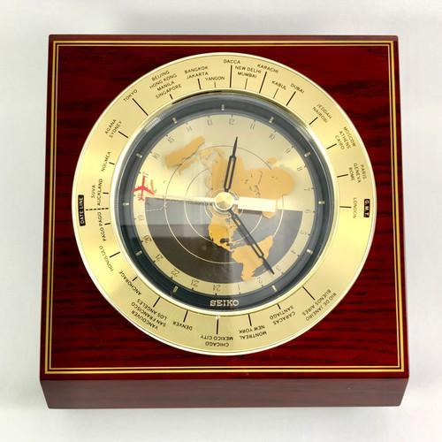 Seiko World Time GMT Desk/Mantel Clock QQZ885A Airplane Seconds...
