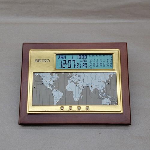 Seiko World Time Wood Desk Clock 12/24 hr Calendar Dual Alarm...