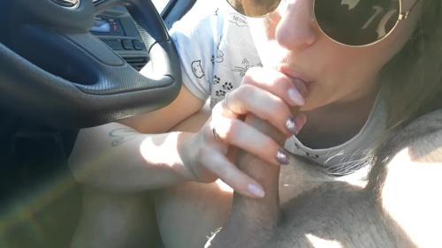 Geile vrouw doet orale seks met man in de auto