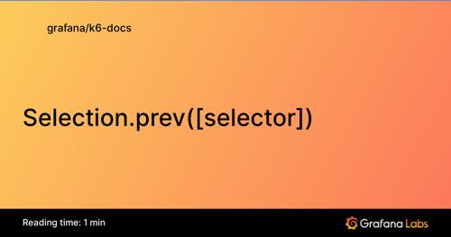 Selection.prev([selector]) | Grafana k6 documentation