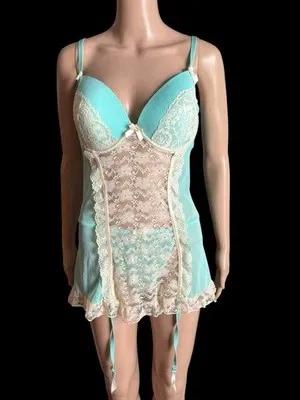 Vintage 90s Sensual Mint Green Lingerie 2X Teddy Sexy Thong...