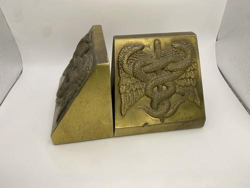 M.D. Doctor Caduceus Serpents Medecine Medical Brass Bookends...
