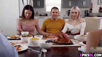After serving the family meal, he has sex with his stepsisters...