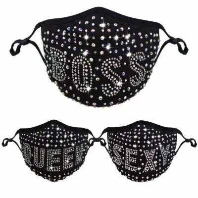 Rhinestone Bling Queen Sexy Boss Face Mask Sparkly Reusable...