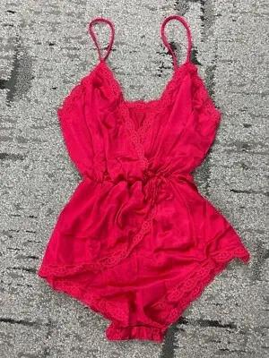 Sexy Vintage 70s 80s Red NegligΓ©e Nightie Teddy Nylon Lace S...