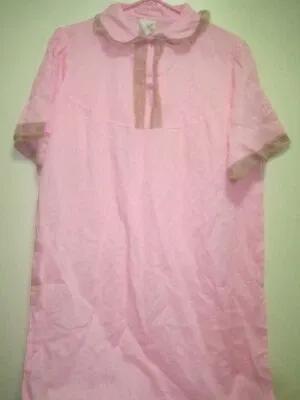 VTG 1970s MITCHELL LONG Nightgown Sz L PINK SH SLEEVE&LACE...