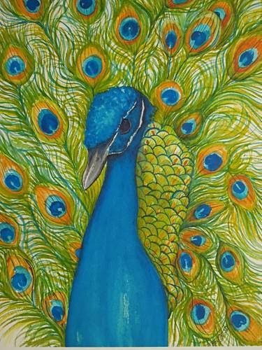 Peacock Watercolor Wall Art PRINT 8x10 By Sharon Foster