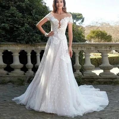 Sexy Sheer Scoop Neck Short Sleeves Tulle Wedding Dress Lace...