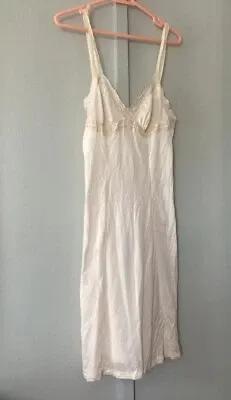 Vtg CHAMPAGNE Nude FULL SLIP Dress Small Semi Sheer RUFFLE LACE...