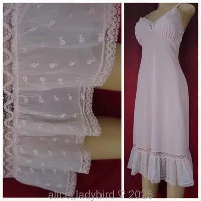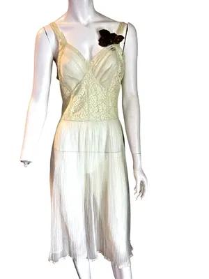 NWT Vintage 50s Full Dress SLIP Ruffle CHIFFON Lace Sheer Nylon...
