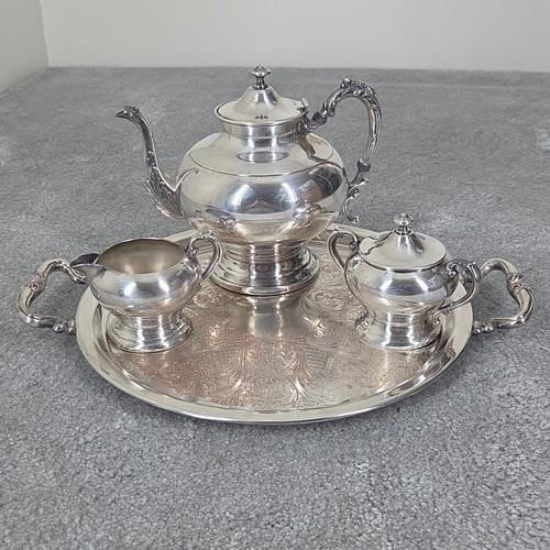 Vtg Sheridan Silver On Copper Round Tray Handles Tea Pot Cream...