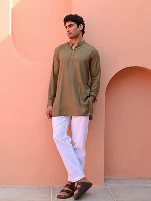 Rust Olive Men Short Kurta