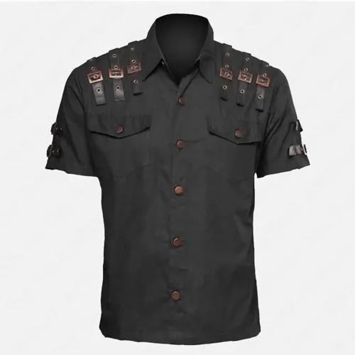 Industrial Utility Strap Shirt - Men's Steampunk Short Sleeve Top