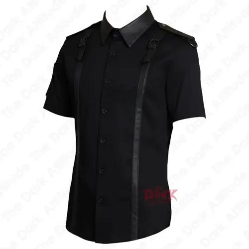 Police Uniform Leather Short Sleeve Shirt | Black Fetish Style