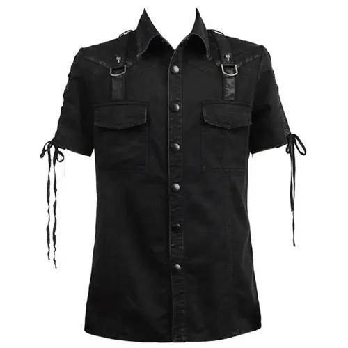 Punk Button-Up Short Sleeve Shirt - Black Gothic Men’s Top