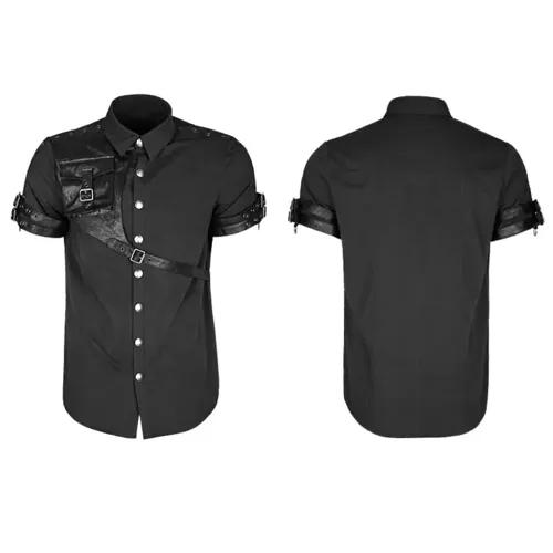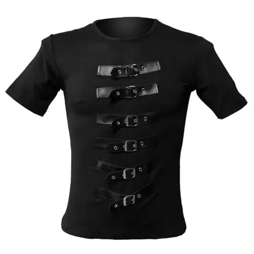 Detachable Strap Punk Rock Shirt - Men’s Gothic Short Sleeve Top