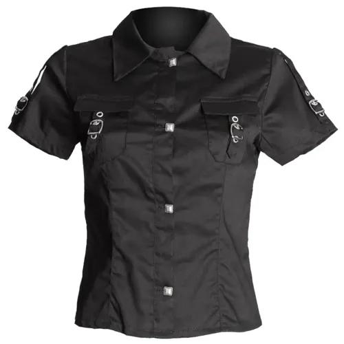 Buckle Strap Military Shirt - Short Sleeve Gothic Style
