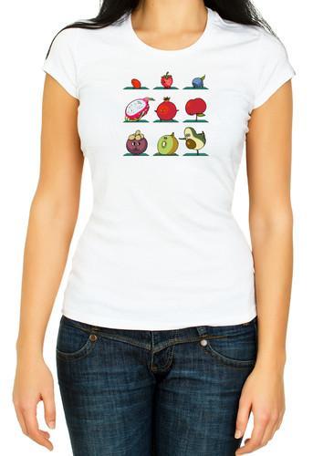 woman wearing a friend shirt . she is brunette, slender, short...