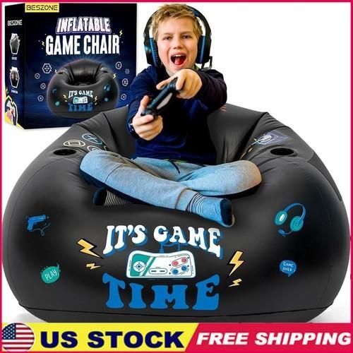 Inflatable Gaming Bean Bag Chair W/ Cup Holder & Side Pocket...