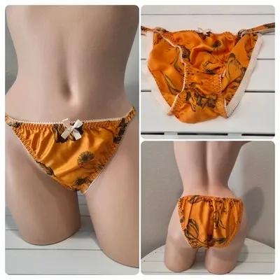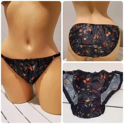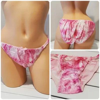 Liquid Satin Double SILK String Bikini Panty Floral Print 8/XL...