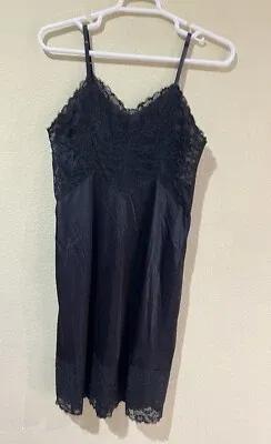 Black Vanity Fair Vintage Slip Floral Lace Silky Shiny Nylon...