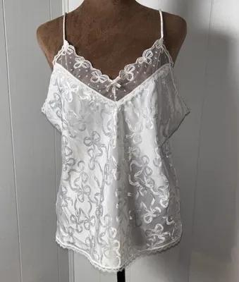 Vintage Cine Star Cami white Lace Silky Semi Sheer Coquette...